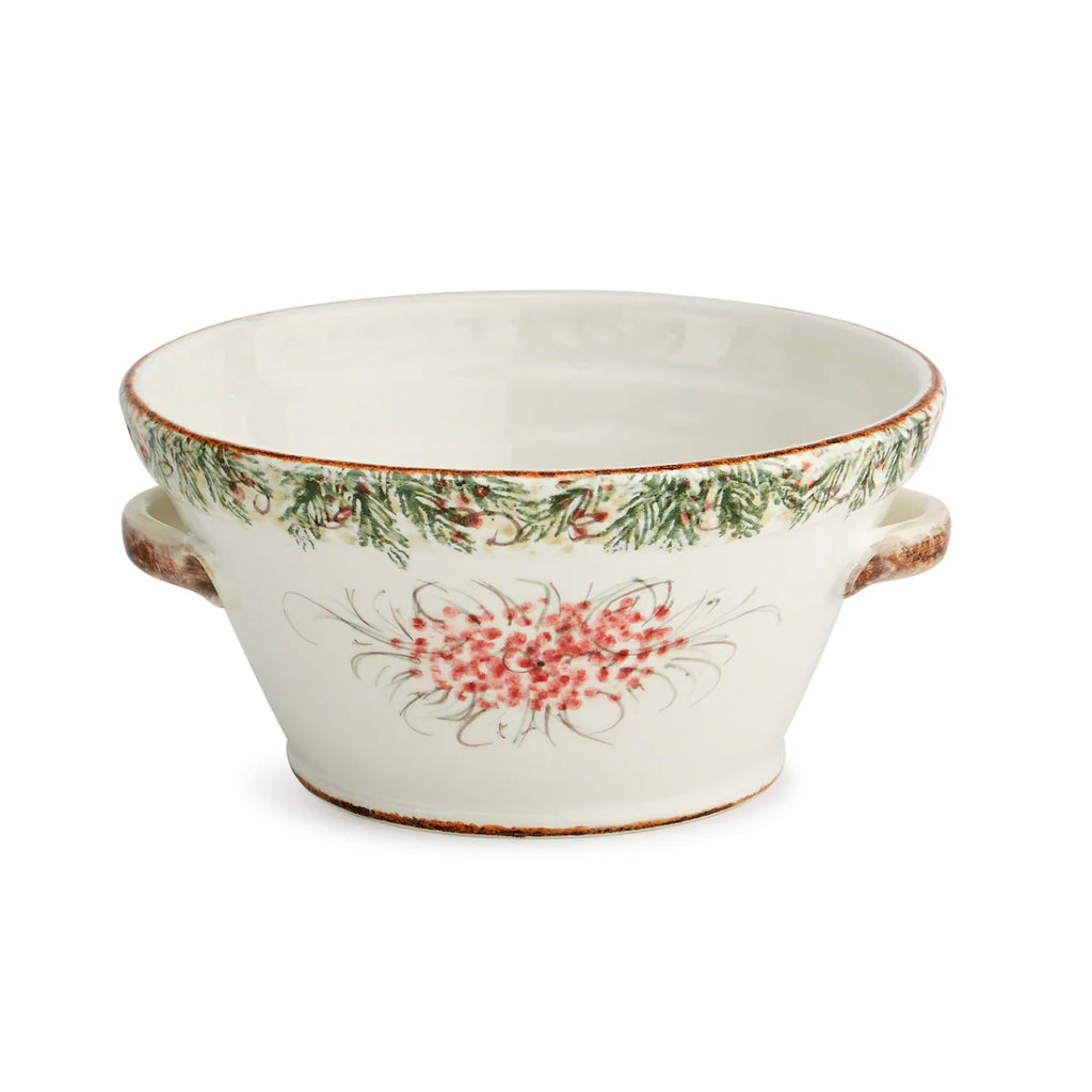 Buon Natale! Our best-selling Natale Collection is one of the most popular lines in the industry. Festive, yet soft, it features majestic snowy evergreens surrounded by enchanting pine boughs and winterberries. All hand painted, no two pieces are alike. Customers love its "wintery" look, perfect for Christmas celebrations but so beautiful throughout the winter season.