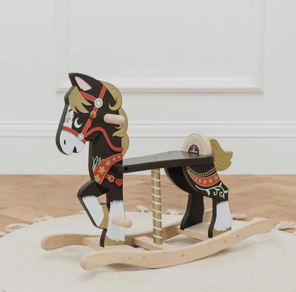 Give a gift that will last a lifetime of play with this beautiful traditional wooden rocking horse toy. Adventures await with this friendly four-legged friend, featuring a seat and 2 smooth wooden handles. Perfect for helping to improve mobility and balance through play. The wonderfully detailed artwork is finished with gorgeous gold accents for a luxurious touch. This toy is a real showstopper and would make a truly special gift for any occasion.