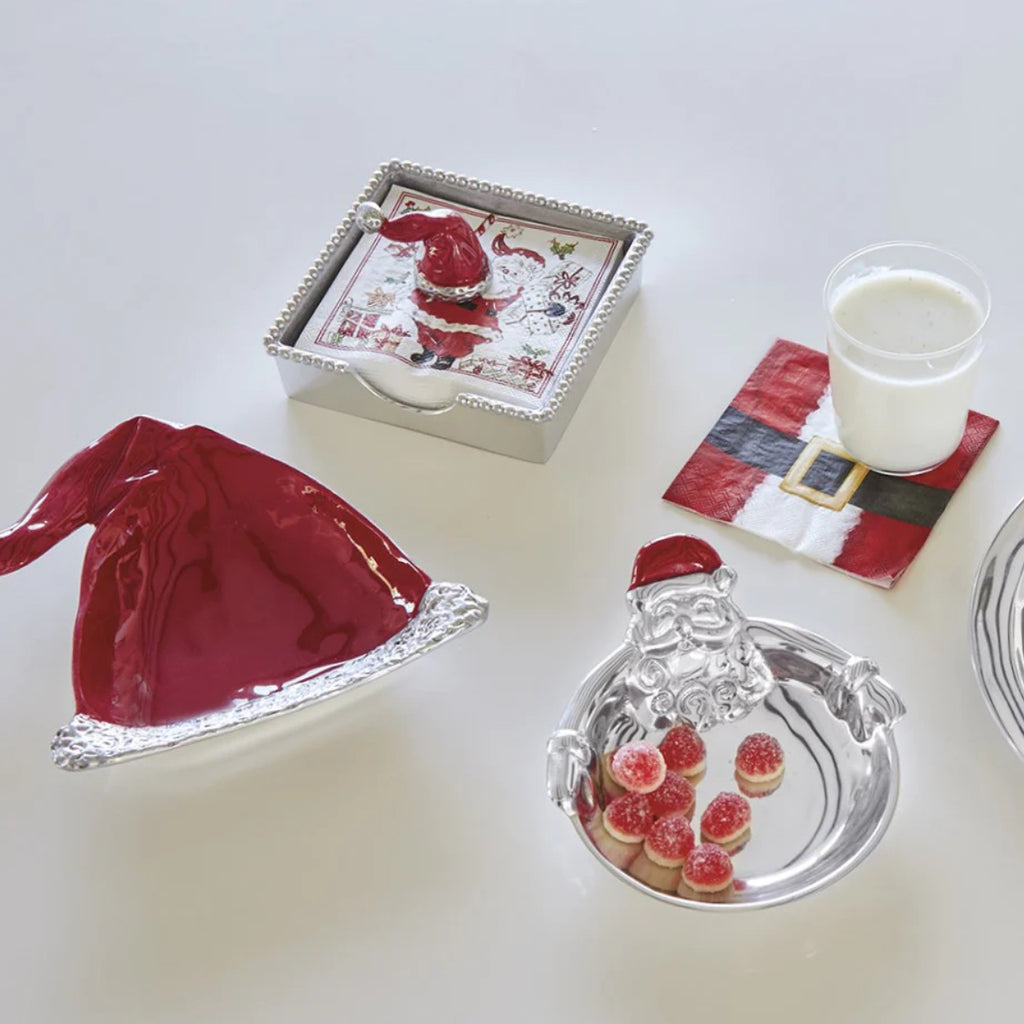 Add a touch of cheer to your holiday table with our Hugging Santa Candy Dish. This heartwarming design is ready to serve up your favorite seasonal sweets, treats, or small bites. Make it even more special with a custom engraving—perfect for commemorating a family name, holiday message, or special date. Handcrafted from 100% recycled aluminum.