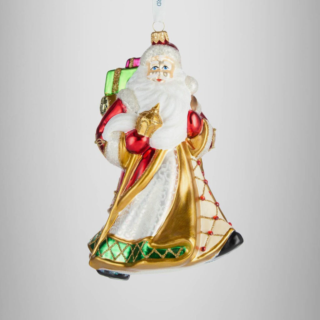 Celebrate the magic of Christmas with the Holiday Heirlooms Santa Ornament. Handcrafted in Europe by skilled artisans, this vibrant ornament captures Santa in a swishy festive robe, carrying a sack brimming with presents. Hand-painted with meticulous attention to detail and adorned with sparkling accents, each piece is unique. Presented in a Waterford-branded Fjord box with a clear lid and strung with a white grosgrain ribbon, this ornament is a timeless treasure for your holiday collection.