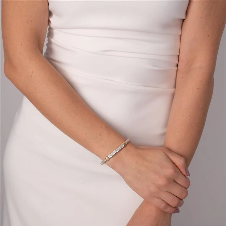 14K Gold and Sterling Silver, Multi-Pavé Diamond Stackable Bracelet | 4MM